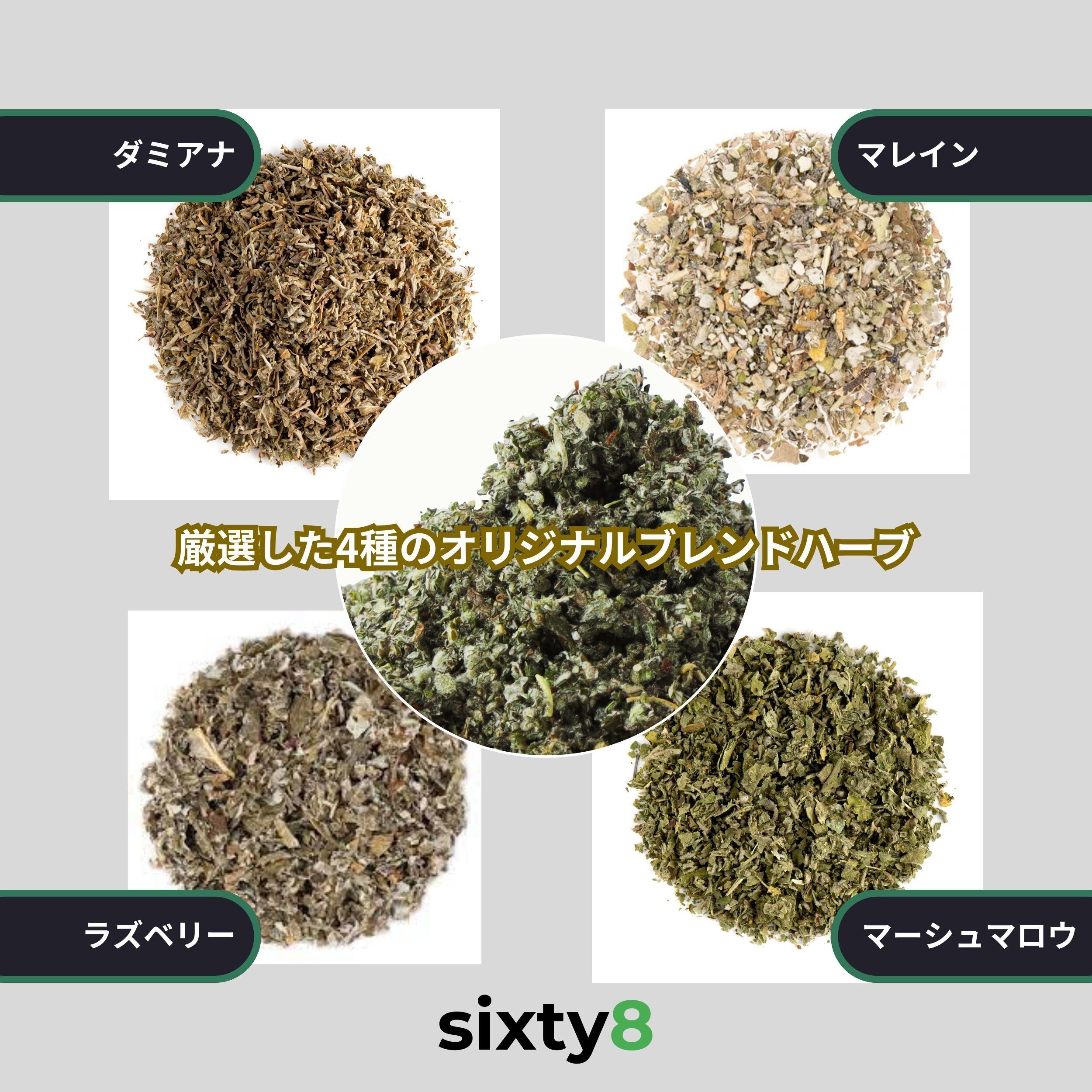 【高濃度へのこだわり】 SIXTY8独自のアントラージュ効果をさらに引き出すため、CBNをオリジナルブレンド。 含有量にも徹底的にこだわり、2000mgの高濃度を実現しました。 贅沢なChill Timeをぜひご堪能ください。